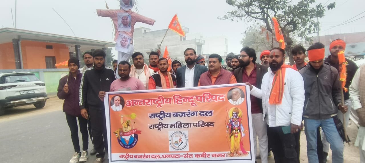 बांग्लादेश में हिंदुओं पर हो रहे कथित अत्याचार और हिंसक घटनाओं के विरोध में शनिवार को अंतरराष्ट्रीय हिंदू परिषद एवं राष्ट्रीय बजरंग दल के कार्यकर्ताओं ने धनघटा चौक पर जोरदार प्रदर्शन करते हुए प्रतीकात्मक पुतला दहन किया। प्रदर्शनकारियों ने नारेबाजी के माध्यम से बांग्लादेश में अल्पसंख्यक हिंदुओं की सुरक्षा सुनिश्चित करने की मांग उठाई।