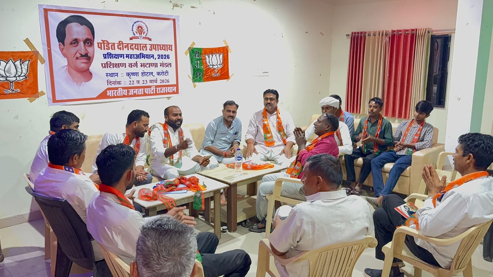 भारतीय जनता पार्टी राजस्थान के तत्वावधान में आयोजित दो दिवसीय पंडित दीनदयाल उपाध्याय प्रशिक्षण महाभियान-2026 के अंतर्गत भटाणा मंडल का प्रशिक्षण वर्ग कृष्णा होटल, करोटी में उत्साहपूर्वक शुरू हुआ। पहले दिन विभिन्न वैचारिक व तकनीकी सत्रों के माध्यम से कार्यकर्ताओं को संगठन की नीतियों, तकनीक के उपयोग और कार्य विस्तार की रणनीतियों की जानकारी दी गई।